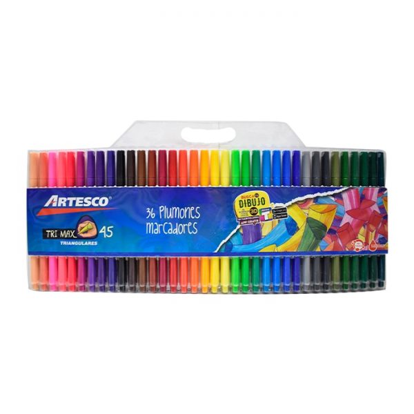 36 plumones marcadores triangulares.